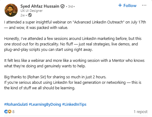 I'm Rohan Gulati, a growth marketer and educator who has turned LinkedIn into a lead-gen powerhouse. From working with Binance Labs-backed brands to teaching at University of Delhi, I blend hands-on experience with strategic insight.